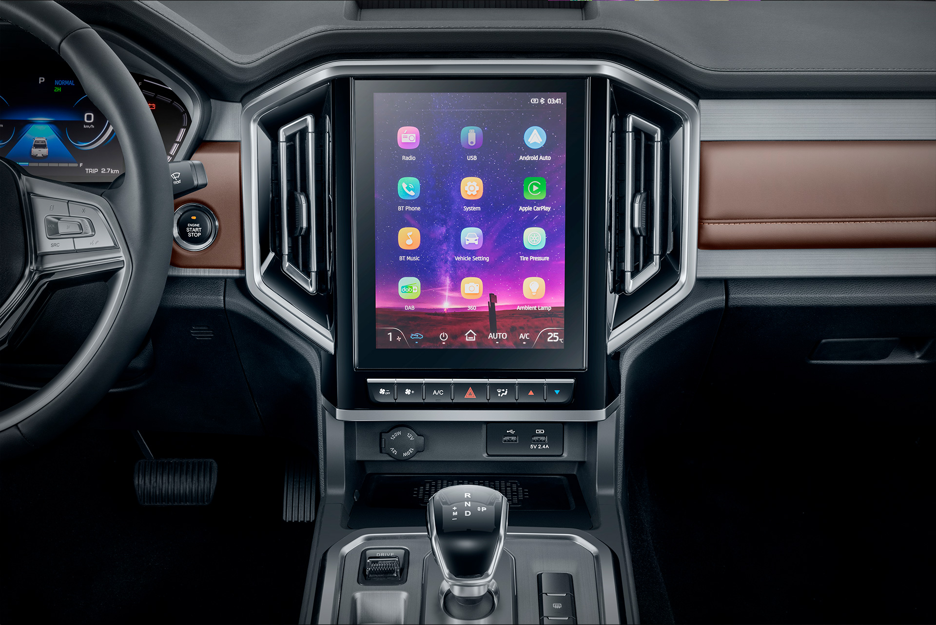Оснащение Т9 – такая же сильная сторона, как и его проходимость. Передние кресла оснащены электрорегулировками, руль настраивается по наклону и вылету, есть электрический ручной тормоз, а смартфон можно подключить через Android Auto или Apple CarPlay.